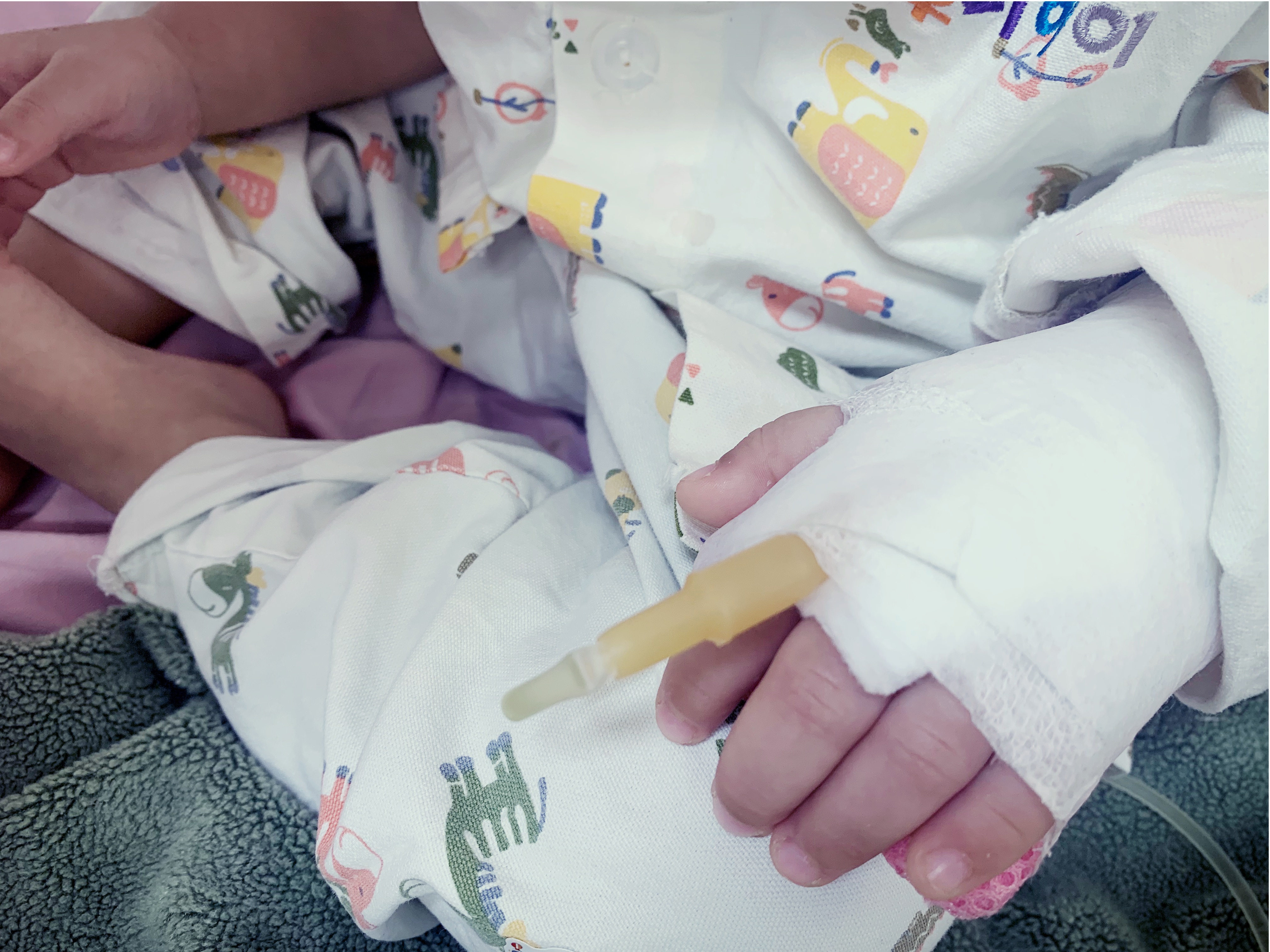조그만 손등에 수액 바늘이 꽂히니 너무